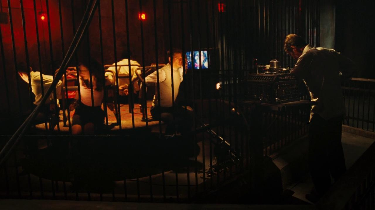 That said, once this movie fully gets cooking, the last half-hour or so is pretty good; the intercutting in the final act is solid, I like how Hoffman's crazy plan comes together, and seeing him become a good ol' slasher movie monster is fun. And then there’s the 'pectoral muscles trap,' which the movie builds to the same way Mission: Impossible – Dead Reckoning ramps up to Tom Cruise's crazy cliff jump – it knows the money shot to end all money shots (relative to each series' particular aspirations) is coming, and it’s going to milk the hell out of it. And for good reason, because it is a great trap. There is a speed and intensity to the final stretch, helped along by an extra propulsive score by Charlie Clouser, that a lot of the sequels are missing in how much they bounce around in time and between subplots.